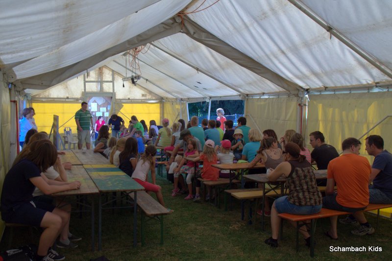 Am Wochenende vom 31.7.15 bis zum 2.8.15 verbrachten rund 50 Kinder und Jugendliche wieder ein paar schöne Tage am Sportplatz Schambach. Das Zeltlager begann am Freitag mit dem Zeltaufbau und daraufhin wurden die Regeln aufgeschrieben. Um 19.30 Uhr startete dann die Nachtwanderung, bei der uns näheres über die Tiere aus unserer Umgebung z.B. Fledermäuse erzählt wurde. Nach der Wanderung setzten wir uns dann noch gemütlich ans Lagerfeuer. Am nächsten Morgen wurden nach dem Frühstück drei Gruppen gebildet. In zwei von ihnen waren Kinder und Jugendliche gemischt und die dritte Gruppe bestand aus Erwachsen. Diese Teams traten gegeneinander in vielen Gruppenspielen an, wie z.B. Steinweitwurf, Seilziehen oder Völkerball. Nach einem gemeinsamen Mittagessen konnten wir ein Insektenhotel bauen, Fußball oder Basketball spielen, ins Freibad gehen oder einfach „chillen“. Abends wurde gegrillt und danach hielten wir uns wieder am Lagerfeuer auf. Am Vormittag des letzten Tages hielt Pfarrer Hirsch um 10 Uhr einen Feldgottesdienst am Sportplatz für das ganze Dorf. Dann bauten wir die Zelte ab und danach war das Zeltlager für heuer leider schon wieder zu Ende.